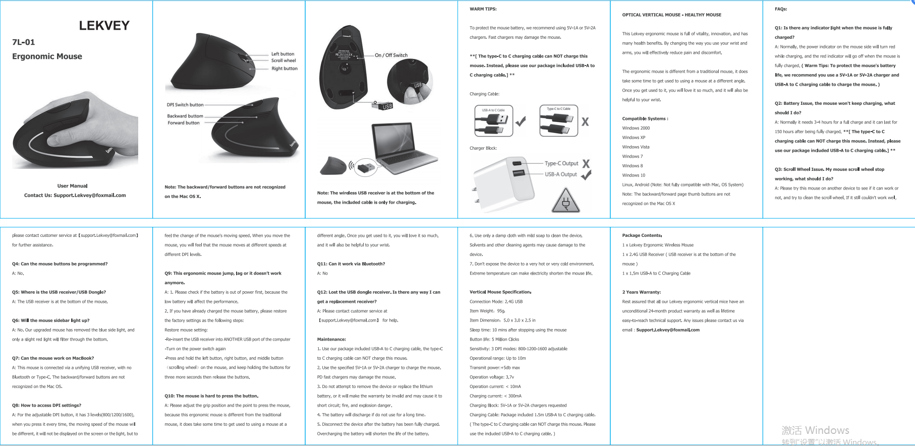 Lekvey Ergonomic Mouse, Vertical Wireless Mouse - 57° Angle, Rechargeable, 3 DPI for Comfort, Reduce Wrist Pain, Carpal Tunnel Relief for PC, Mac, Windows, Laptop, Office, Black